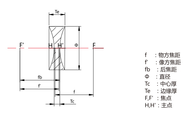 直徑(mm) | 焦距(mm) | 后焦距(mm) | 中心厚度(mm) | 邊緣厚度(mm) | 曲率半徑(mm) | |